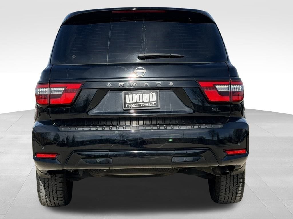For your comfort and convenience, this Armada SL features dual-zone automatic climate control, a power liftgate, and a power-adjustable driver's seat with memory settings. The leather-appointed seating adds a touch of sophistication, while the heated front seats and steering wheel ensure you stay cozy on even the chilliest days.