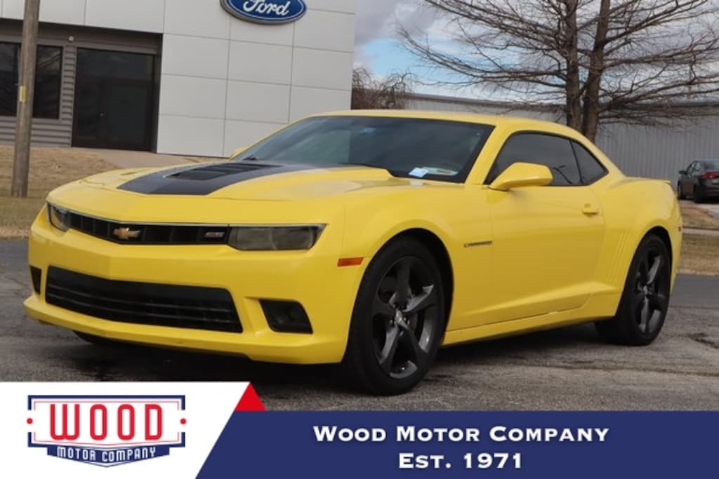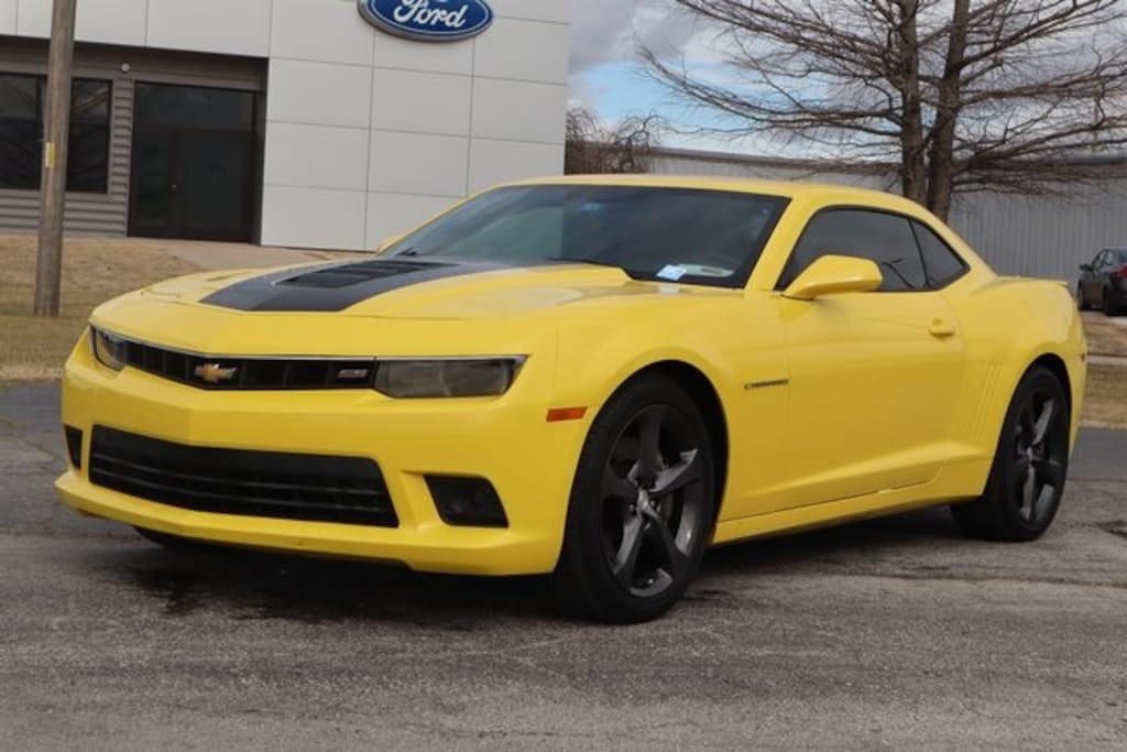 Bright Yellow 2014 Chevrolet Camaro SS 2SS RWD 6-Speed Automatic with TapShift 6.2L V8 SFI 2 Front Cup Holders, 20" x 8" Front & 20" x 9" Rear Aluminum Wheels, 3-Spoke Leather-Wrapped Steering Wheel, 4-Wheel Antilock 4-Wheel Disc Brakes, Air Conditioning, AM/FM Stereo w/Navigation, Analog Instrumentation, Auto-dimming door mirrors, Auto-dimming Rear-View mirror, Auxiliary Multi-Function Gauges, Body-Color Roof Ditch Molding, Boston Acoustics Premium 9-Speaker Audio System, Brake assist, Bumpers: body-color, Cargo Net, Carpeted Front Floor Mats, Color Display Driver Information Center, Compass, Delay-off headlights, Driver door bin, Driver vanity mirror, Electric Rear-Window Defogger, Electronic Cruise Control, Electronic Stability Control, Exterior Parking Camera Rear, Front fog lights, Front reading lights, Fully automatic headlights, Garage door transmitter, Head-Up Display, Heated door mirrors, Heated Driver & Front Passenger Seats, Heated front seats, High-Intensity Discharge Headlamps, Illuminated entry, LATCH System, Leather Shift Knob, Leather-Wrapped Shift Knob, Maintenance-Free Battery, Manual Rake & Telescopic Steering Column, OnStar 6 Months Directions & Connections Plan, Outside temperature display, Panic alarm, Passenger door bin, Passenger vanity mirror, Power door mirrors, Power passenger seat, Power Programmable Door Locks, Power Sunroof w/Express-Open & Venting, Preferred Equipment Group 2SS, Premium Carpeted Floor Mats, Rear Spoiler, Rear window defroster, Remote Keyless Entry, RS Package, Security system, Separate Daytime Running Lamps, SiriusXM Satellite Radio, Speed control, Speed-sensing steering, Spoiler, StabiliTrak, Stainless-Steel Dual-Outlet Exhaust, Steering Wheel Mounted Audio Controls, Tachometer, Telescoping steering wheel, Tilt steering wheel, Traction control, Trip computer, Universal Home Remote, USB Port Audio System Feature, Voltmeter.