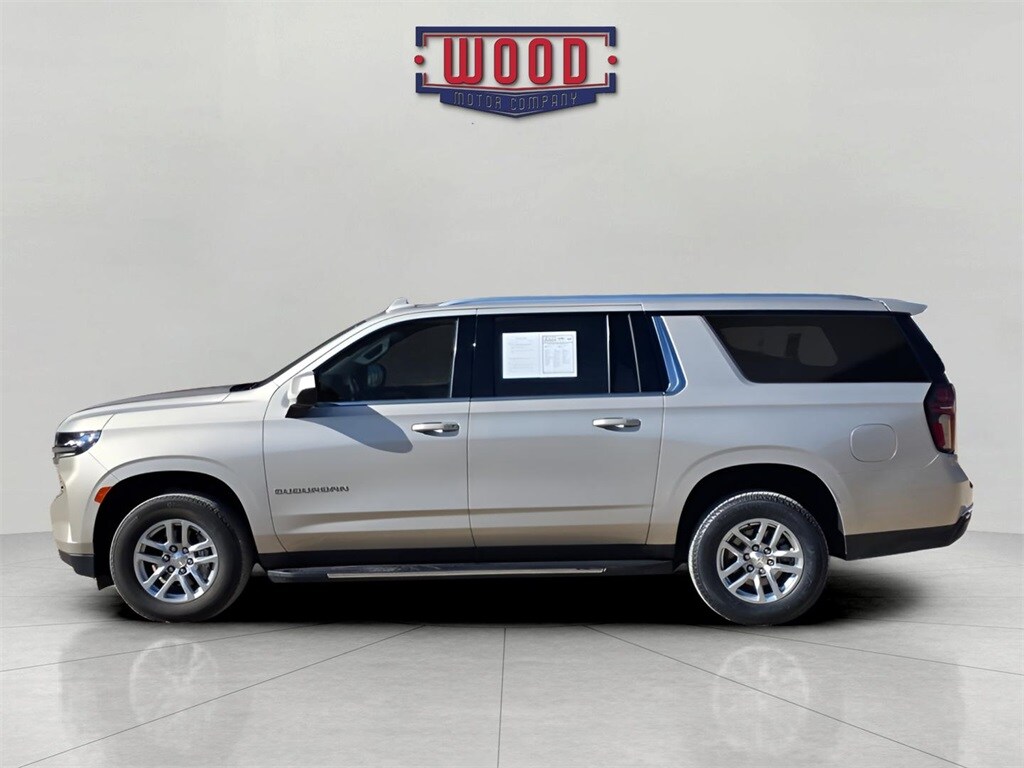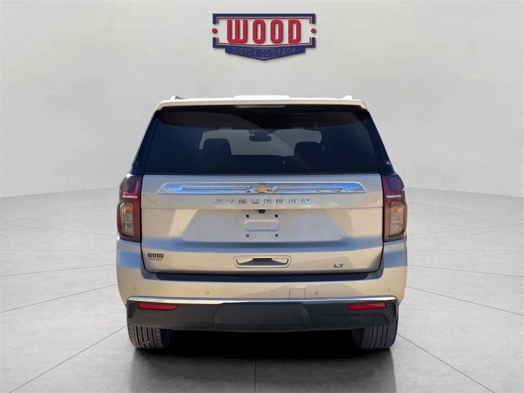 CARFAX One-Owner. Clean CARFAX. Suburban LT, 4D Sport Utility, EcoTec3 5.3L V8, 10-Speed Automatic with Overdrive, 4WD, Empire Beige Metallic, Black Leather, 10-Way Power Driver & Passenger Seat Adjusters, 1st & 2nd Row Color-Keyed Carpeted Floor Mats, 3rd row seats: split-bench, Apple CarPlay/Android Auto, Auto High-beam Headlights, Auto-Dimming Inside Rear-View Mirror, Automatic temperature control, Bose 9-Speaker Stereo Audio System Feature, Bright Front & Rear Door Sill Plates, Color-Keyed Carpeting Floor Covering, Driver & Front Outboard Passenger Airbags, Electronic Stability Control, Enhanced Driver Information Center, Floor Console w/Storage Area, Front Bucket Seats, Front dual zone A/C, Hands-Free Rear Power Programmable Liftgate, Heated door mirrors, Heated Driver & Front Passenger Seats, Heated front seats, Infotainment Display, Leather-Appointed Seating, LED Daytime Running Lamps, Memory Settings For Driver, Navigation System, Outside temperature display, Power driver seat, Power Liftgate, Power windows, Preferred Equipment Group 1LT, Rear air conditioning, Remote keyless entry, Remote Start, SiriusXM w/360L, Speed control, Split folding rear seat, Steering wheel mounted audio controls, Telescoping steering wheel, Universal Home Remote, Wireless Charging, Wrapped Steering Wheel. Empire Beige Metallic 2024 Chevrolet Suburban LT 4WD 10-Speed Automatic with Overdrive EcoTec3 5.3L V8