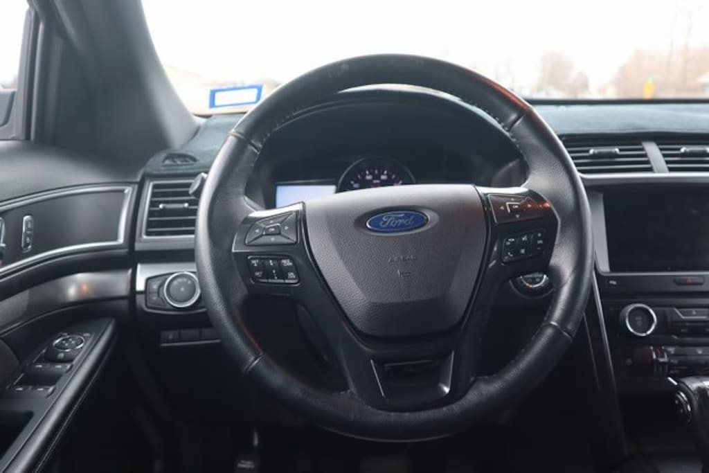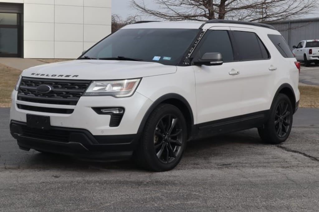 White Platinum Clearcoat Metallic 2018 Ford Explorer XLT FWD 6-Speed Automatic with Select-Shift 3.5L 6-Cylinder SMPI DOHC 2 Driver Configurable 4.2" Color LCD Displays, 3.39 Non-Limited-Slip Axle Ratio, 3rd row seats: split-bench, Adaptive Cruise Control & Fwd Collision Warning, Air Conditioning, Auto High-Beam Headlights, Auto-Dimming Rear-View Mirror, Black Roof Rack Side Rails, BLIS Blind Spot Information System, Brake assist, Comfort Package, Compass, Delay-off headlights, Driver Connect Package, Driver door bin, Driver vanity mirror, Dual-Zone Electronic Automatic Temperature Ctrl, Ebony Black Unique Door-Trim Panel Insert, Electronic Stability Control, Equipment Group 202A, EXPLORER Badge on Hood, EXPLORER Unique Branded Front Floor Mats, Exterior Parking Camera Rear, Ford Safe & Smart Package, Forward Sensing System, Front Bucket Seats, Front Center Armrest, Front reading lights, Fully automatic headlights, Heated Steering Wheel, Illuminated entry, Lane-Keeping System, Leather Heated Bucket Seats, Leather steering wheel, Leather-Trimmed Bucket Seats, LED Fog Lamps, Lower Bodyside Cladding Insert, Lower Door Trim, Lower Front & Rear Bumper Covers, Magnetic Met-Painted Grille Bars w/Mesh Insert, Outside temperature display, Overhead console, Panic alarm, Passenger door bin, Passenger vanity mirror, Power & Heated Glass Sideview Mirrors, Power driver seat, Power Liftgate, Power passenger seat, Power steering, Power windows, Radio: AM/FM Stereo w/7 Speakers, Rain-Sensing Wipers (Front Only), Rear air conditioning, Rear Bumper Step Pad, Rear Parking Sensors, Rear reading lights, Rear seat center armrest, Rear window defroster, Rear window wiper, Remote keyless entry, Remote Start System, Security system, Sideview Mirror Caps, Single-CD Player, Speed control, Speed-Sensitive Wipers, Split folding rear seat, Steering wheel mounted audio controls, SYNC 3 Communications & Entertainment System, SYNC Connect, Tachometer, Telescoping steering wheel, Tilt steering wheel, Trip computer, Universal Garage Door Opener (UGDO), Variably intermittent wipers, Voice-Activated Touchscreen Navigation System, Wheels: 20" x 8.5" Magnetic Met Painted 10-Spoke, XLT Appearance Package, XLT Technology Feature Bundle.