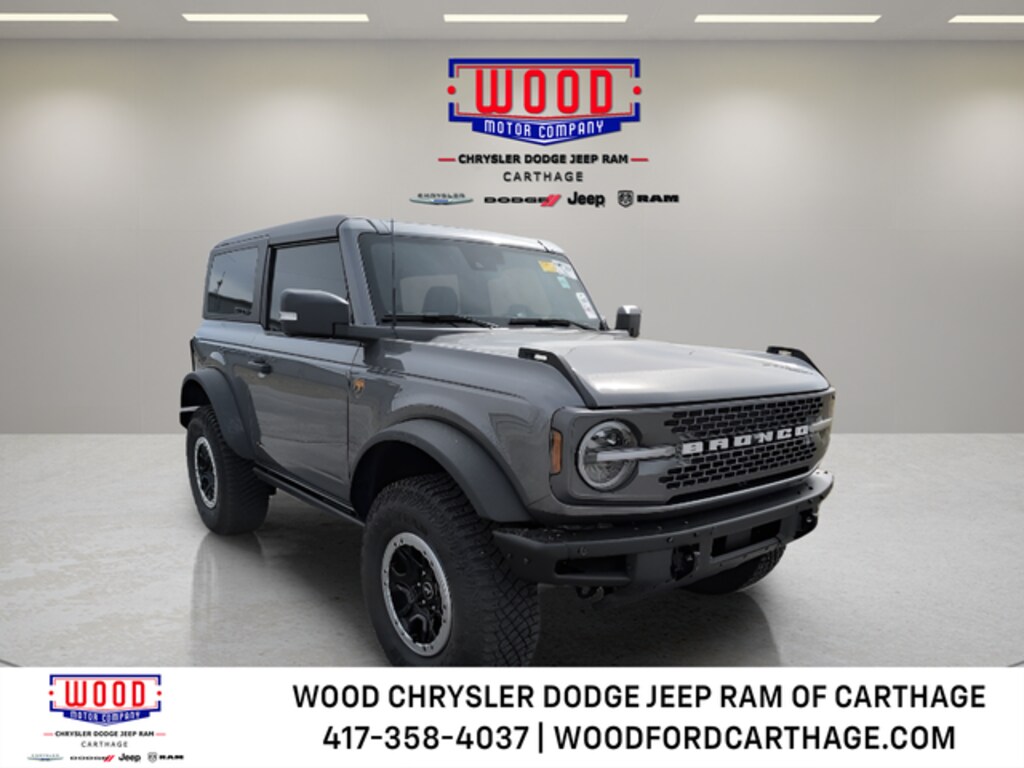 Gray Metallic 2022 Ford Bronco Badlands 4WD 10-Speed Automatic 2.7L EcoBoost V6 12" LCD Capacitive Touchscreen w/Swipe Capability, 2 Smart Charging USB Ports In Dashboard, 2-Door Intelligent Access w/Lock/Unlock, 360-Degree Camera, 4.7 Final Drive Ratio, Adaptive Cruise Control, Additional Sound Deadening, Air Conditioning, Ambient Footwell Lighting, Auto High-beam Headlights, Auto-Dimming Interior Rear-View Mirror, Brake assist, Compass, Convertible HardTop, Convertible roof lining, Delay-off headlights, Dr & Pass Illuminated Sliding Visor Vanity Mirrors, Driver door bin, Driver vanity mirror, Dual-Zone Electronic Automatic Temperature Control, Electronic Stability Control, Enhanced Voice Recognition, Equipment Group 334A Lux Package, Evasive Steering Assist, Ford Performance Heavy-Duty Modular Front Bumper, Front & Rear Floor Liners, Front Bucket Seats, Front Center Armrest, Front License Plate Bracket, Front Parking Sensors, Front reading lights, Front Row Heated Seats, Fully automatic headlights, Glass rear window, Heated door mirrors, Heated Steering Wheel, High Clearance Fender Flares, High Clearance Suspension, Illuminated entry, Information on Demand Panel, Navigation system: Connected Navigation, Outside temperature display, Overhead console, Panic alarm, Passenger door bin, Passenger vanity mirror, Position-Sensitive Bilstein Shock Absorbers, Power door mirrors, Power Outlet - Back Side of Center Floor Console, Power steering, Power windows, Radio: B&O Sound System by Bang & Olufsen, Rear Parking Sensors, Rear window defroster, Rear window wiper, Remote keyless entry, Sasquatch Package, Security system, Sideview Mirrors, Speed control, Split folding rear seat, Steering wheel mounted audio controls, SYNC 4, Tachometer, Telescoping steering wheel, Tilt steering wheel, Traction control, Trip computer, Universal Garage Door Opener, Variably intermittent wipers, Wheels: 17" Black High Gloss-Painted Aluminum, Wireless Charging Pad.
