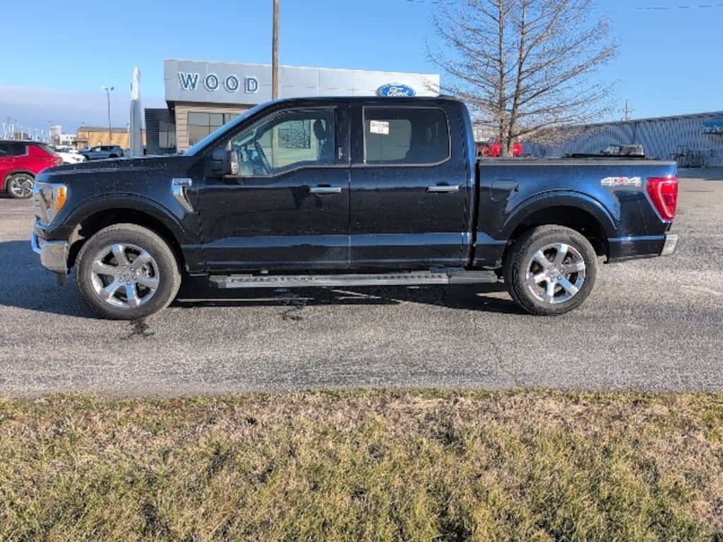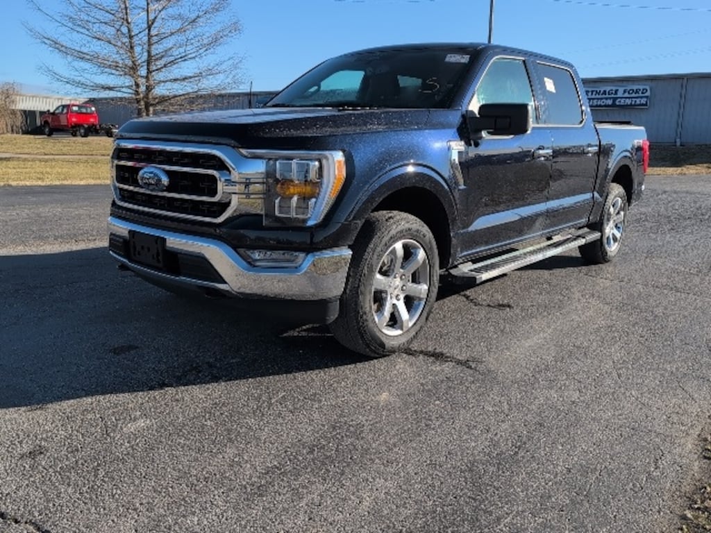 Antimatter Blue Metallic 2022 Ford F-150 XLT 4WD 10-Speed Automatic 2.7L V6 EcoBoost 4WD, 10-Way Power Driver & Passenger Seats, 2-Bar Style Grille w/Chrome 2 Minor Bars, 3.55 Axle Ratio, 8" Productivity Screen in Instrument Cluster, Air Conditioning, Auto High-beam Headlights, Auto Start-Stop Removal, Auto-Dimming Rear-View Mirror, Bed Utility Package, BoxLink, Brake assist, Bright Polished Step Bars, Bumpers: chrome, Chrome Door & Tailgate Handles w/Body-Color Bezel, Chrome Single-Tip Exhaust, Class IV Trailer Hitch Receiver, Compass, Connected Navigation & SiriusXM w/360L Removal, Delay-off headlights, Driver door bin, Driver vanity mirror, Dual Zone Electronic Automatic Temperature Control, Electronic Stability Control, Equipment Group 302A High, Exterior Parking Camera Rear, Front Center Armrest w/Storage, Front fog lights, Front reading lights, Fully automatic headlights, GVWR: 6,470 lbs Payload Package, Heated door mirrors, Heated Front Seats, Illuminated entry, Integrated Trailer Brake Controller, Intelligent Access w/Push Button Start, Leather-Wrapped Steering Wheel, LED Box Lighting, LED Reflector Headlamps, LED Sideview Mirror Spotlights, Low tire pressure warning, Onboard 400W Outlet, Outside temperature display, Overhead console, Panic alarm, Passenger door bin, Passenger vanity mirror, Power door mirrors, Power Glass Heated Sideview Mirrors, Power steering, Power windows, Power-Adjustable Pedals, Power-Sliding Rear Window, Pro Trailer Backup Assist, Radio: AM/FM SiriusXM w/360L, Rear reading lights, Rear step bumper, Rear Under-Seat Storage, Rear window defroster, Remote keyless entry, Remote Start System w/Remote Tailgate Release, SecuriCode Drivers Side Keyless-Entry Keypad, Security system, Speed control, Split folding rear seat, Steering wheel mounted audio controls, SYNC 4, SYNC 4 w/Enhanced Voice Recognition, Tachometer, Tailgate Step w/Tailgate Work Surface, Telescoping steering wheel, Tilt steering wheel, Trailer Tow Package, Trip computer, Variably intermittent wipers, Voltmeter, Wheels: 18" Chrome-Like PVD, XLT Chrome Appearance Package, Zone Lighting.