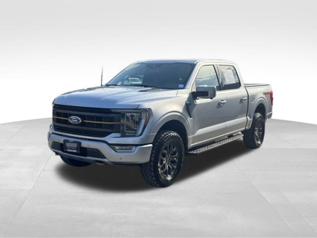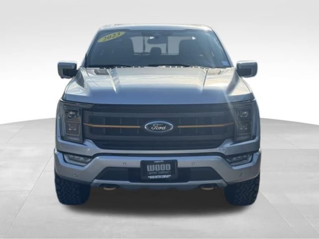 4WD, 12" Productivity Screen in Instrument Cluster, 2nd Row Heated Seats, 360 Degree Camera, ABS brakes, Advanced Security Pack, Alloy wheels, Compass, Connected Built-In Navigation, Electronic Stability Control, Equipment Group 402A High, Evasive Steering Assist, Ford Co-Pilot360 Assist 2.0, Front dual zone A/C, Heated door mirrors, Heated front seats, Heated Steering Wheel, Illuminated entry, Intelligent Adaptive Cruise Control w/Stop & Go, Intersection Assist, LED Projector w/Dynamic Bending Headlamps, Low tire pressure warning, Navigation system: Connected Navigation, Power Glass Sideview Mirr w/Body-Color Skull Caps, Power Tilt/Telescoping Steering Column w/Memory, Power-Adjustable Pedals w/Memory, Power-Sliding Rear Window, Pro Trailer Backup Assist & Pro Trailer Hitch Assist, Radio: B&O Sound System by Bang & Olufsen, Rain-Sensing Wipers, Remote keyless entry, Speed Sign Recognition, Traction control, Unique Tremor Leather-Trimmed Bucket Seats, Universal Garage Door Opener, Wireless Charging Pad. Iconic Silver Metallic 2023 Ford F-150 Tremor TREMOR 4WD 10-Speed Automatic 3.5L V6 EcoBoost