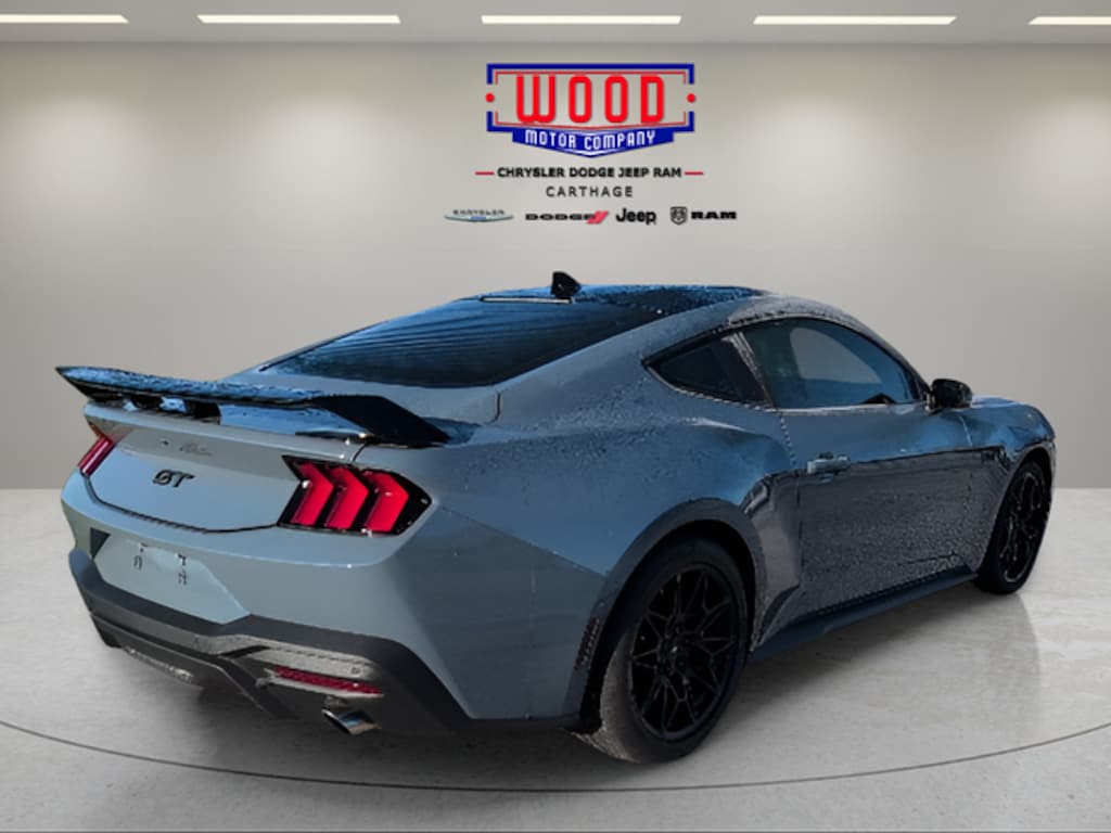 Vapor Blue Metallic 2024 Ford Mustang GT Premium RWD 10-Speed Automatic 5.0L V8 Ti-VCT 19" Branded Brake System w/Performance Linings, Active Anti-Theft System, Air Conditioning, Auto High-beam Headlights, Automatic temperature control, B&O Sound System by Bang & Olufsen, Black GT Pony Badges, Black Mirror Caps, Black Painted Strut-Tower Brace, Brake assist, Bumpers: body-color, Compass, Connected Built-In Navigation, Delay-off headlights, Driver door bin, Driver vanity mirror, Ebony Black Grille, Electric Hand-Operated Parking Brake (Drift Brake), Electronic Stability Control, Equipment Group 401A High Package, Exterior Parking Camera Rear, Ford Co-Pilot360 Assist+, Front Bucket Seats, Front Center Armrest, Front reading lights, Front Towing Hooks, Fully automatic headlights, GT Performance Package, Headlamps w/Black Bezels, Heavy-Duty Front Springs, Illuminated Door-Sill Scuff Plates, Illuminated entry, Integrated Turn Signals, Leather Shift Knob, Leather steering wheel, Leather-Trimmed Bucket Seats w/Color Accents, Locking Center Console, Memory Driver Seat & Mirrors, Mustang Nite Pony Package, Mustang Nite Pony Package w/Shadow Black Paint, Outside temperature display, Overhead console, Painted Black Roof, Panic alarm, Passenger vanity mirror, Performance Raised Rear Wing, Power door mirrors, Power steering, Power windows, Pre-Collision Assist w/Automatic Emergency Braking, Rain sensing wipers, Rear Parking Sensors, Rear window defroster, Remote keyless entry, Security Package, Speed control, Speed-Sensitive Wipers, Split folding rear seat, Spoiler, Sport steering wheel, Steering wheel mounted audio controls, SYNC 4.0 QNX, Tachometer, Telescoping steering wheel, Tilt steering wheel, Trip computer, Unique Chassis Tuning, Unique Stability Control, Upsized Rear Sway Bars, Variably intermittent wipers, Voltmeter, Wheel Locking Kit, Wheels: 19" x 9" Fr/19" x 9.5" Rr Carbonized.
