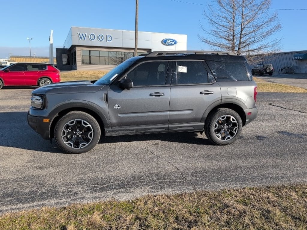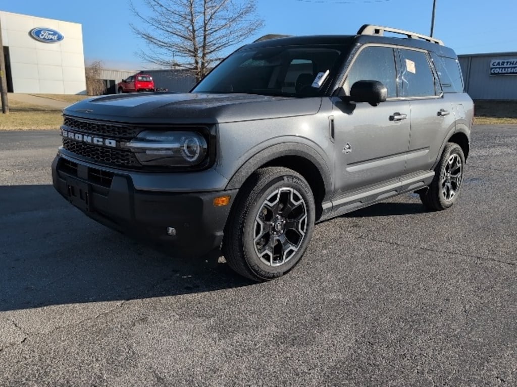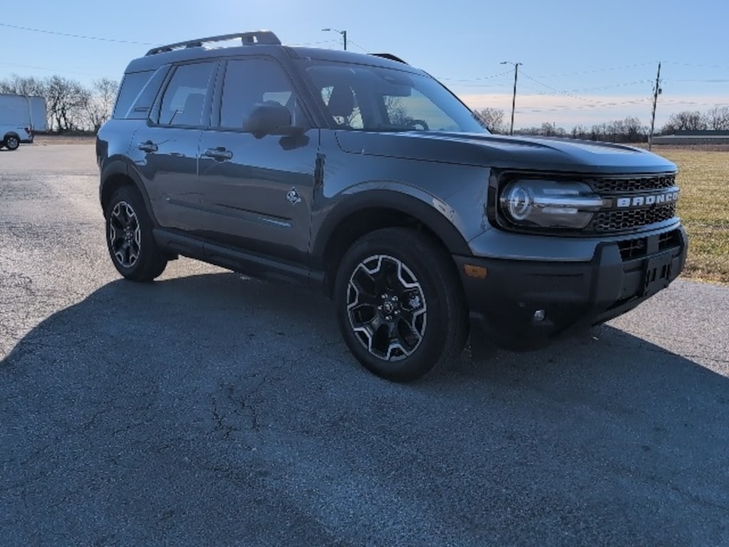 Gray Metallic 2025 Ford Bronco Sport Outer Banks 4WD 8-Speed Automatic 1.5L EcoBoost 360-Degree Camera w/Trail & Split View, Air Conditioning, Auto High-beam Headlights, Auto-dimming Rear-View mirror, Automatic temperature control, B&O Sound System by Bang & Olufsen, Brake assist, Compass, Connected Navigation, Delay-off headlights, Driver door bin, Driver vanity mirror, Electronic Stability Control, Equipment Group 300A, Front Bucket Seats, Front Center Armrest, Front Driver/Passenger Seat Back Map Pockets, Front dual zone A/C, Front fog lights, Front License Plate Bracket, Front Parking Sensors, Front reading lights, Fully automatic headlights, Garage door transmitter, HD Radio, Heated door mirrors, Heated front seats, Heated steering wheel, Illuminated entry, Memory seat, Outer Banks Tech Package+, Outside temperature display, Overhead console, Panic alarm, Passenger door bin, Passenger vanity mirror, Power door mirrors, Power driver seat, Power passenger seat, Power steering, Power windows, Premium Trimmed Front Bucket Seats w/Ebony/Roast, Rain sensing wipers, Rear Parking Sensors, Rear reading lights, Rear seat center armrest, Rear window defroster, Rear window wiper, Remote keyless entry, Reverse Brake Assist, Security system, Speed control, Speed-Sensitive Wipers, Split folding rear seat, Steering wheel mounted audio controls, Tachometer, Telescoping steering wheel, Tilt steering wheel, Trip computer, Variably intermittent wipers, Wheels: 18" Ebony Black-Painted Aluminum.