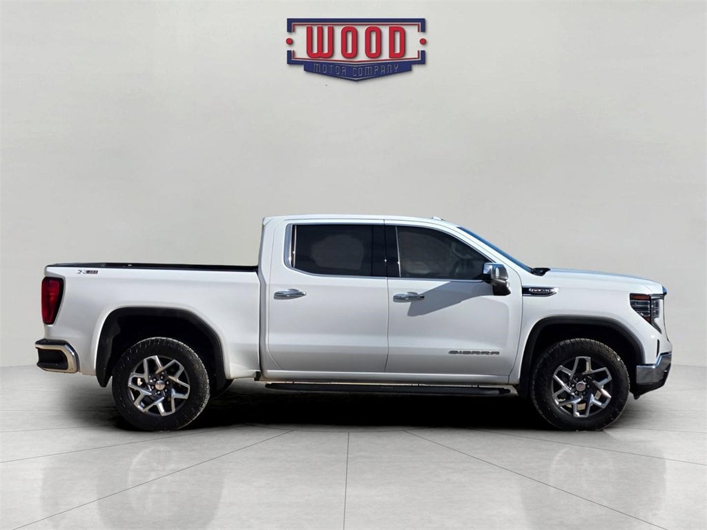 CARFAX One-Owner. Clean CARFAX. Sierra 1500 SLT, 4D Crew Cab, EcoTec3 6.2L V8, 10-Speed Automatic, 4WD, Summit White, Dark Walnut/Slate w/Perf Leather-Appointed Front Outboard Seat Trim, 10-Way Power Driver Seat Adjuster w/Lumbar, 10-Way Power Passenger Seat Adjuster w/Lumbar, 120-Volt Bed Mounted Power Outlet, 120-Volt Instrument Panel Power Outlet, 170 Amp Alternator, 2 Charge/Data USB Ports, 2 Charge/Data USB Ports Inside Center Console, 2 Type-C Charge-Only Rear USB Ports, 20 Polished Aluminum Wheels, 6-Speaker Audio System Feature, Apple CarPlay/Android Auto, Auto High-beam Headlights, Auto-Locking Rear Differential, Automatic temperature control, Auxiliary External Transmission Oil Cooler, Chrome Header & Chrome Grille Insert Bars, Chrome Wheel To Wheel Assist Steps, Color-Keyed Carpeting Floor Covering, Compass, Deep-Tinted Glass, Delay-off headlights, Driver Memory, Dual Exhaust System, Electric Rear-Window Defogger, Electrical Steering Column Lock, Electronic Precision Shift, Electronic Stability Control, Floor-Mounted Center Console, Front Bucket Seats, Front dual zone A/C, Front Frame-Mounted Black Recovery Hooks, Front Rainsensing Wipers, Fully automatic headlights, GMC Connected Access Capable, HD Rear Vision Camera, Heated Driver & Front Outboard Passenger Seating, Heated front seats, Heavy-Duty Air Filter, High Capacity Suspension Package, Hill Descent Control, Hitch Guidance, Keyless Open & Start, Lane Keep Assist w/Lane Departure Warning, LED Cargo Area Lighting, Manual Tilt-Wheel & Telescoping Steering Column, Memory seat, Navigation System, Off-Road Suspension, OnStar & GMC Connected Services Capable, Outside temperature display, Perf Leather-Appointed Front Outboard Seat Trim, Perimeter Lighting, Power Door Locks, Power driver seat, Power Front Passenger Windows w/Express Up/Down, Power Front Windows w/Driver Express Up/Down, Power Rake & Telescoping Steering Column, Power Rear Windows w/Express Down, Power windows, Preferred Equipment Group 4SA, Premium audio system: GMC Infotainment System, Premium Bose 7-Speaker Sound System, Push Button Start, Radio: Premium GMC Infotainment Audio System, Rear Wheelhouse Liners, Remote keyless entry, Remote Vehicle Starter System, Security system, SiriusXM w/360L, SLT Convenience Package, Speed control, Steering Wheel Audio Controls, Steering wheel mounted audio controls, Texas Edition Badging, Texas Edition SLT Premium Package, Theft Deterrent System (Unauthorized Entry), Traction control, Trailering Package, Ventilated Driver & Front Passenger Seats, Wi-Fi Hotspot Capable, Wireless Charging, Wireless Phone Projection, X31 Hard Badge, X31 Off-Road Package. Summit White 2023 GMC Sierra 1500 SLT 4WD 10-Speed Automatic EcoTec3 6.2L V8