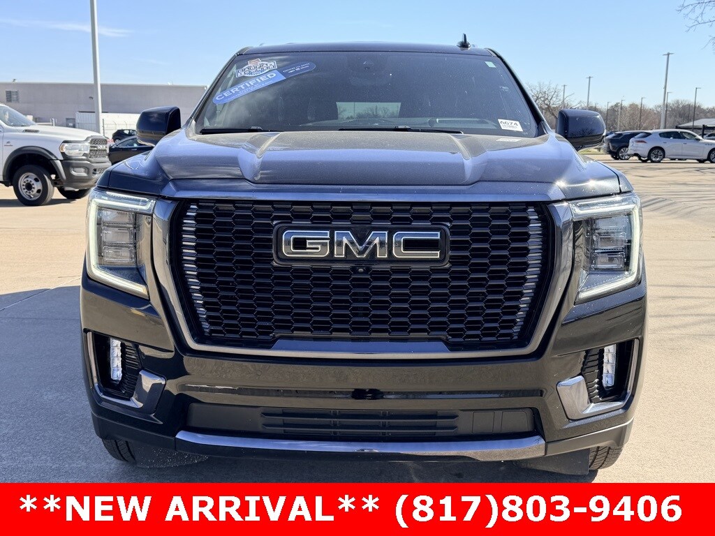 4WD, Preferred Equipment Group 5SB, Premium Capability Package w/Active Response 4WD, Advanced Technology Package, Air Ride Adaptive Suspension, 15" Diagonal Multi-Color Head-Up Display, 16-Way Power Seat Adjusters, Adaptive Cruise Control, Advanced Security Package, Apple CarPlay/Android Auto, Automatic temperature control, Bose Performance Series Sound System w/18 Speakers, Bright Front & Rear Door Sill Plates, Chrome Door Handles w/Body-Color Strip, Dual Exhaust System, Dual-Pane Panoramic Power Sunroof, Electronic Limited Slip Differential (eLSD), Enhanced Automatic Emergency Braking, Enhanced Automatic Parking Assist, Extra Capacity Cooling System, Floor Console, Glass Breakage Sensor, Hands-Free Power Programmable Rear Liftgate, HD Surround Vision, Heads-Up Display, Heated & Ventilated Driver & Front Passenger Seats, Heated 2nd Row Outboard Position Seats, Heated Driver & Front Passenger Seats, Heated Steering Wheel, Hill Descent Control, Inside Rearview Auto-Dimming Rear Camera Mirror, Lane Departure Warning System, Leather-Wrapped Steering Wheel, Max Trailering Package, Outside Heated Power-Adjustable Mirrors, Power Liftgate, Power Release 2nd Row Bucket Seats, Power Tilt & Telescopic Steering Column, Power-Retractable Assist Steps, Rear Camera Mirror Washer, Rear Cross Traffic Alert, Rear Pedestrian Alert, Rear Seat Media System, Reverse Automatic Braking, Safety Alert Seat, Sport Pedal Cover Kit (LPO), Theft-Deterrent Alarm System, Universal Home Remote, Vader Bodyside Moldings, Vehicle Inclination Sensor, Vehicle Interior Movement Sensor, Wheel Locks (Set of 4) (LPO), Wheels: 22" 7-Spoke Ultra-Bright Machined, Wireless Charging. Onyx Black 2023 GMC Yukon XL Denali Ultimate 4WD 10-Speed Automatic with Overdrive EcoTec3 6.2L V8
