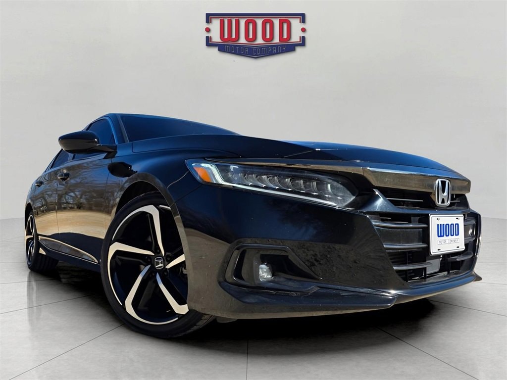 Accord Sport, 4D Sedan, 1.5T I4 DOHC 16V Turbocharged VTEC, CVT, FWD, Crystal Black Pearl, Black w/Fabric w/Synthetic Leather Seat Trim, 8 Speakers, Adaptive Cruise Control: Adaptive Cruise Control (ACC) with Low-Speed Follow, Alloy wheels, Apple CarPlay/Android Auto, Auto High-beam Headlights, Automatic temperature control, Electronic Stability Control, Exterior Parking Camera Rear, Fabric w/Synthetic Leather Seat Trim, Forward collision: Collision Mitigation Braking System (CMBS) + FCW mitigation, Front Bucket Seats, Front Center Armrest, Front dual zone A/C, Fully automatic headlights, Lane Departure Warning System, Power driver seat, Power windows, Radio: 180-Watt AM/FM Audio System, Remote keyless entry, Security system, Steering wheel mounted audio controls, Traction control. Crystal Black Pearl 2022 Honda Accord Sport FWD CVT 1.5T I4 DOHC 16V Turbocharged VTEC