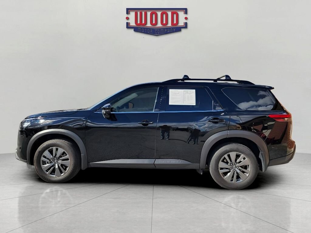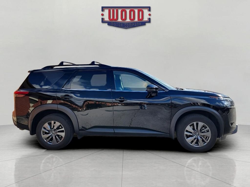 Clean CARFAX. Pathfinder SV, 4D Sport Utility, 3.5L V6 DOHC, 9-Speed Automatic, 4WD, Super Black, Charcoal w/Cloth Seating Surfaces, Automatic temperature control, Electronic Stability Control, Front Bucket Seats, Front dual zone A/C, Fully automatic headlights, Heated Front Bucket Seats, Heated front seats, Illuminated entry, NissanConnect featuring Apple CarPlay and Android Auto, Power driver seat, Power windows, Radio: AM/FM Audio System w/NissanConnect, Rear air conditioning, Rear Parking Sensors, Reclining 3rd row seat, Remote keyless entry, Security system, Telescoping steering wheel, Tilt steering wheel. Super Black 2024 Nissan Pathfinder SV 4WD 9-Speed Automatic 3.5L V6 DOHC