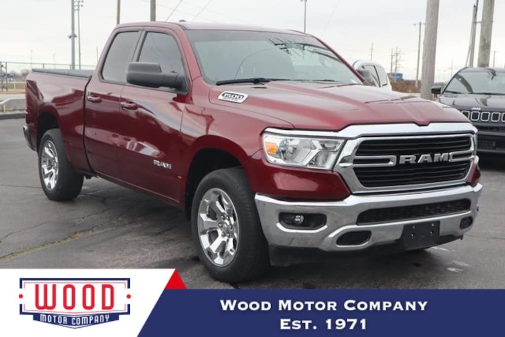 Delmonico Red Pearlcoat 2021 Ram 1500 Big Horn/Lone Star 4WD 8-Speed Automatic HEMI 5.7L V8 Multi Displacement VVT 3.21 Rear Axle Ratio, Air Conditioning, Alloy wheels, Big Horn Badge, Brake assist, Cloth Bench Seat, Compass, Delay-off headlights, Driver door bin, Electronic Stability Control, Front anti-roll bar, Front Center Armrest w/Storage, Front fog lights, Front reading lights, Front Seat Back Map Pockets, Front wheel independent suspension, Fully automatic headlights, GPS Antenna Input, Illuminated entry, Leather steering wheel, Low tire pressure warning, MOPAR Front & Rear Rubber Floor Mats, Occupant sensing airbag, Outside temperature display, Overhead airbag, Overhead console, Panic alarm, ParkView Rear Back-Up Camera, Passenger door bin, Passenger vanity mirror, Power steering, Power windows, Quick Order Package 25Z Big Horn, Radio: Uconnect 3 w/5" Display, Rear 60/40 Folding Seat, Rear anti-roll bar, Rear seat center armrest, Remote keyless entry, Remote Start System, Speed control, Split folding rear seat, Steering wheel mounted audio controls, Tachometer, Telescoping steering wheel, Tilt steering wheel, Trip computer, Variably intermittent wipers, Voltmeter, Wheels: 18" x 8" Cast-Aluminum Painted, Wheels: 20" x 9" Aluminum Chrome Clad (WRK).
