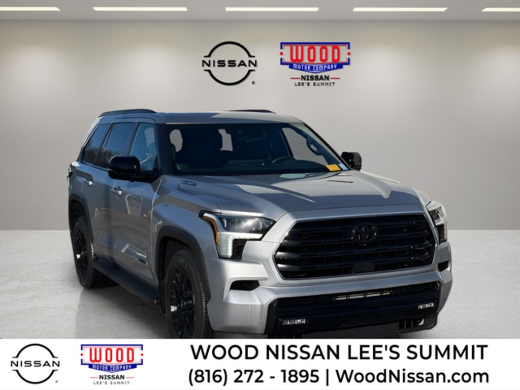 Nightshade Package, Tow Tech Pkg w/o Wireless Trailer Camera System, Power Tilt/Slide Panoramic Roof w/Power Sunshade, V6 Hybrid, 10-Speed Automatic, 4WD, 4x4 Badge, Active Cruise Control, Alloy wheels, Apple CarPlay/Android Auto, Black Overfenders & Rear Bumper, Electronic Stability Control, Fold & Tumble Rear Seat, Front dual zone A/C, Gloss Black Door Handles, Gloss Black Mirror Caps, Gloss Black Tailgate Handle, Gloss Black Window Molding, Heated & Ventilated Front Seats, Heated door mirrors, Heated front seats, Illuminated entry, JBL Premium Audio, Navigation System, Power Liftgate, Remote keyless entry, Second Row Bucket Seats, Trailer Backup Guide w/Straight Path Assist (SPA), Wheels: 20" TRD Sport Matte-Black Alloy, Wireless Smartphone Charger. Celestial Silver Metallic 2025 Toyota Sequoia Limited NIGHTSHADE PKG/TOW TECH PKG/JBL SOUND/REAR BUCKETS 4WD 10-Speed Automatic V6 Hybrid